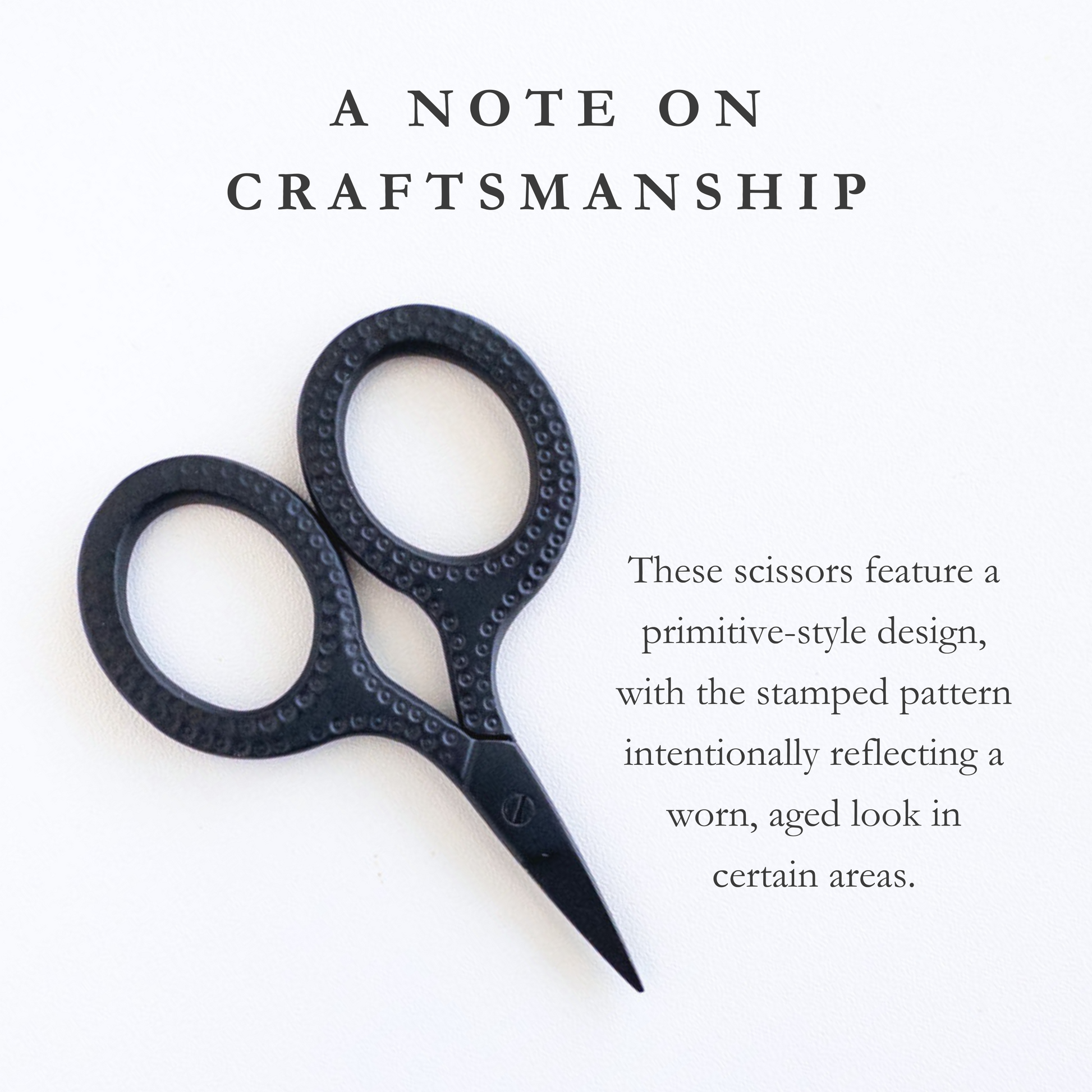 A nod to early Americana, these small primitive embroidery scissors evoke the spirit of traditional craftsmanship with every snip. Their simple matte black finish and folk-inspired pattern bring character to your stitching toolkit - ideal for hand embroidery, cross-stitch, and other crafting projects.